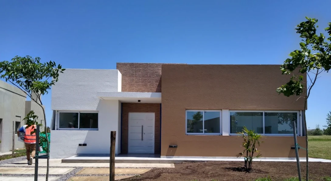 Esta vivienda representa la esencia de la arquitectura moderna: líneas puras, ausencia de ornamentos innecesarios y una funcionalidad pensada para la vida actual. El diseño se articula a través de bloques geométricos superpuestos, donde el blanco impecable contrasta con sectores de revestimiento texturado en tonos tierra, logrando una estética cálida y robusta.